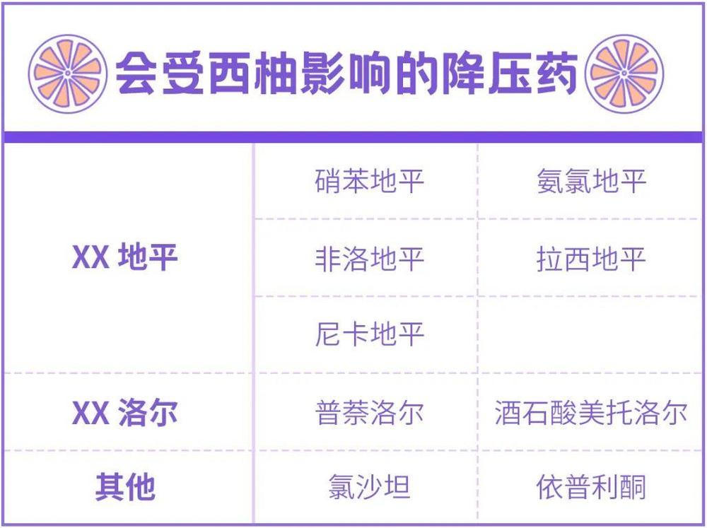 会遭到西柚影响的不只是降压药。CYP3A4酶参加许多药物的代谢,除了常见的抗生素、止痛药,还有特别患者服用的一些安眠药、抗癌药等。